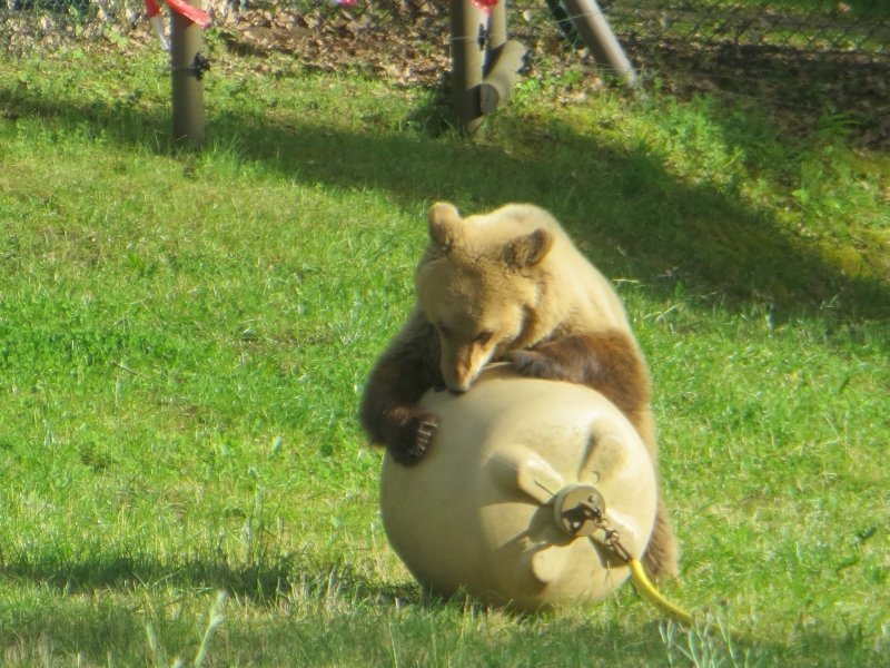 Sie lebte in einem winzigen, schmutzigen Käfig auf dem Gelände des Vergnügungsparks im Süden Albaniens. Ständig war die heute drei Jahre alte Bärin schutzlos der Witterung und dem Lärm durch Musik, Besucher und laute Fahrgeschäfte ausgeliefert.