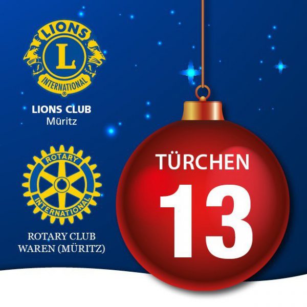 Für wen ist der heutige Freitag, der 13. ein Glückstag? Hinter dem Türchen Nummer 13 der Weihnachtslotterie des Lionsclub Müritz und des Rotary Club Waren warten heute sechs Preise. Darunter Bargeld und verschiedene Gutscheine.