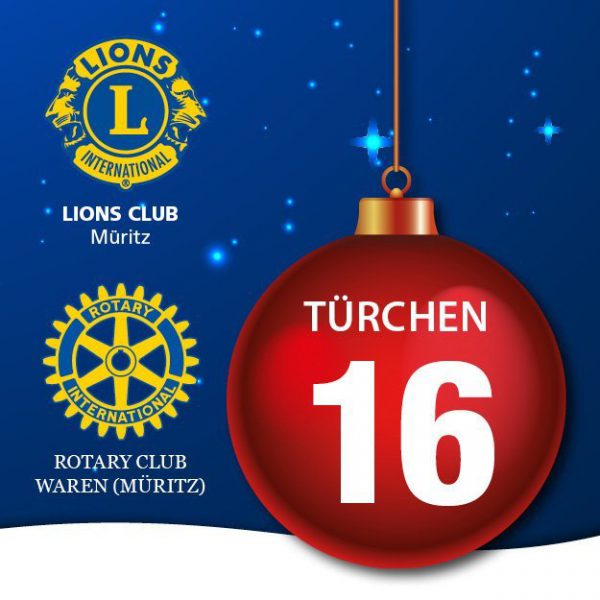 Die Woche startet mit acht Preisen hinter dem Türchen Nummer 16 der Weihnachtslotterie des Lionsclub Müritz und des Rotary Club Waren. Darunter Bargeld, Gutscheine und Candle-Light-Dinner.