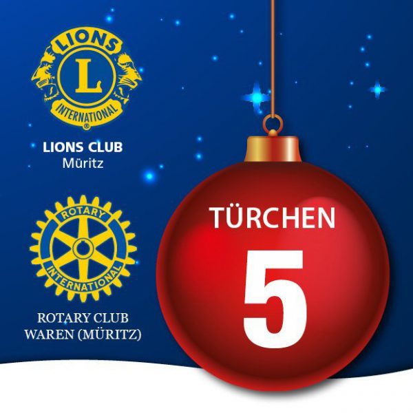 Und schon sind wir bei Türchen Nummer 5. Dahinter verbergen sind bei der Weihnachtslotterie des Lionsclubs Müritz und des Rotary Clubs Waren gleich neun Preise. Unter anderem jede Menge Bargeld, Restaurantgutscheine und eine Jahresfamilienkarte fürs Müritzeum.