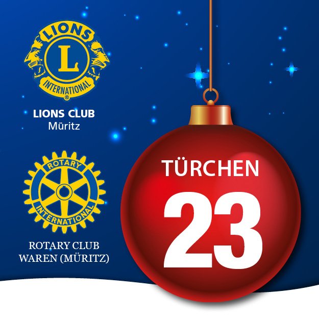 Liebe Müritzer, wir präsentieren hier die letzten Gewinnzahlen der Weihnachtslotterie des Lionsclub Müritz und des Rotaryclub Waren. Ja, es gibt heute gleich die Gewinnzahlen von zwei Tagen, nämlich vom 23. und 24. Dezember.