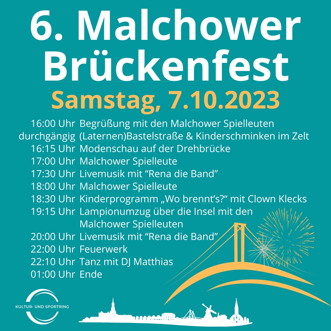 Vor zehn Jahren wurde Malchows Wahrzeichen – die Drehbrücke – samt Fundament und Uferbefestigung komplett erneuert. Das und mehr soll beim traditionellen Brückenfest ordentlich gefeiert werden. Und zwar am kommenden Sonnabend, 7. Oktober.