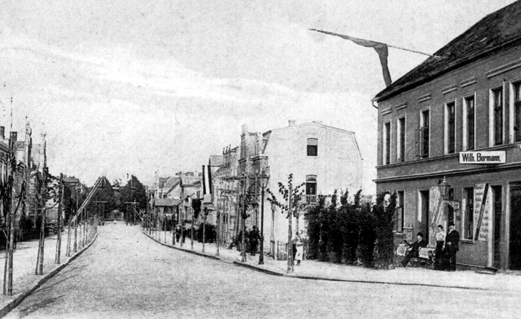 Guten Morgen, der Fotograf steht auf der Straße – Kurve in die Goethestraße. Das Haus vorn rechts ist die spätere „Sonne“ ,oder „Ponnybar“. Im Hintergrund sieht man Bahnschranken und am Straßenrand die Baumbepflanzung, die ich so noch kenne. Ein schönes Wochenende, Brigitte Behrendt