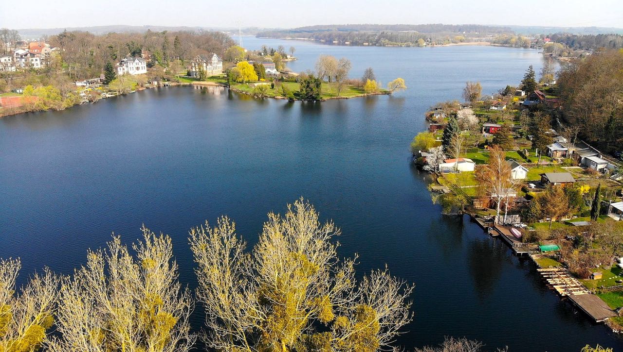 Blick über die mistelbewachsenen Baumkronen zum Tiefwarensee.