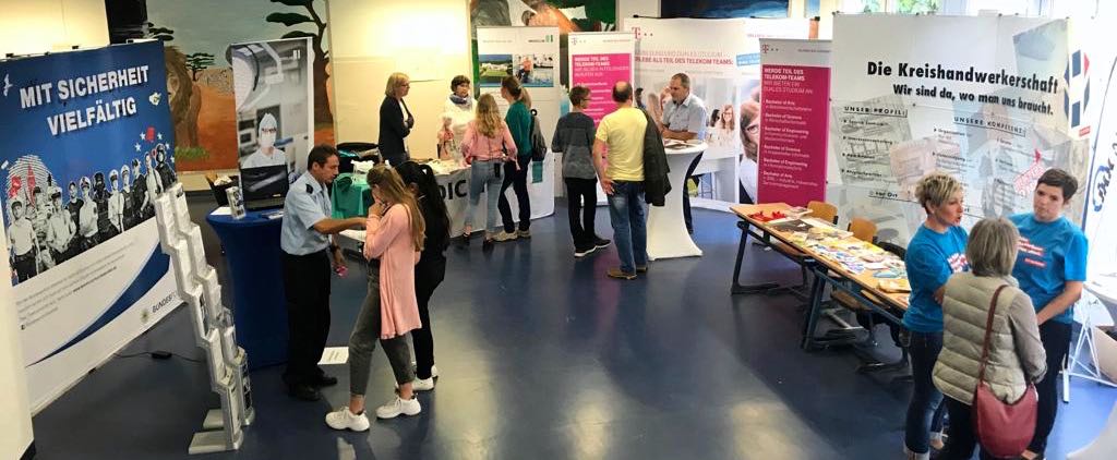 Die Berufsfelder wurden in den verschiedensten Bereichen wie beispielsweise Verwaltung, Handwerk, Pflege oder Lebensmittelbereich vorgestellt. So erhielten die Schüler unter anderem Informationen zu folgenden Berufen: Notfallsanitäter, Medizinische/r Fachangestellte/r, Fachkraft Forstwirt und viele mehr. Die Polizei informierte beispielsweise, dass eine Ausbildung oder ein Studium zahlreiche Möglichkeiten bietet, selbst als Techniker oder im IT-Bereich, und das auch ein Quereinstig möglich sei. Vom Bombenentschärfer bis zum Taucher gebe es alles. Das Hauptbeschäftigungsfeld ist jedoch der Polizist. Immerhin beschäftigt die Polizei rund 45 000 Mitarbeiter.