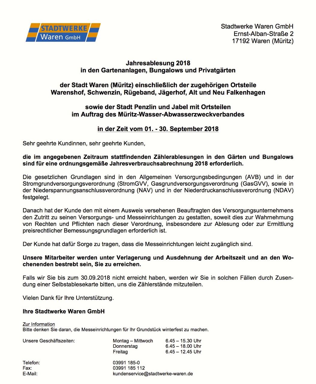 Wichtige Information der Warener Stadtwerke für alle Gartenbesitzer: