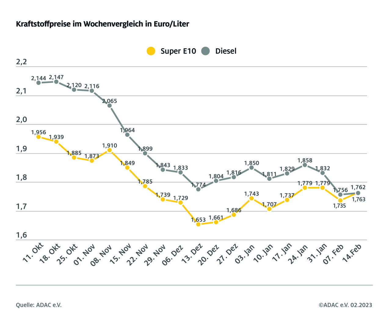 Erstmals seit achteinhalb Monaten ist Diesel-Kraftstoff wieder günstiger als Super E10. Wie die aktuelle ADAC Auswertung der Kraftstoffpreise in Deutschland ergibt, kostet ein Liter Super 10 im bundesweiten Mittel 1,763 Euro, der Preis für einen Liter Diesel liegt bei 1,762 Euro. Zuletzt war Diesel am 31. Mai 2022 günstiger als Super E10. Seit Beginn des Tankrabatts am 1. Juni mussten Dieselfahrer beim Tanken regelmäßig mehr bezahlen als die Fahrer von Benzinern.
