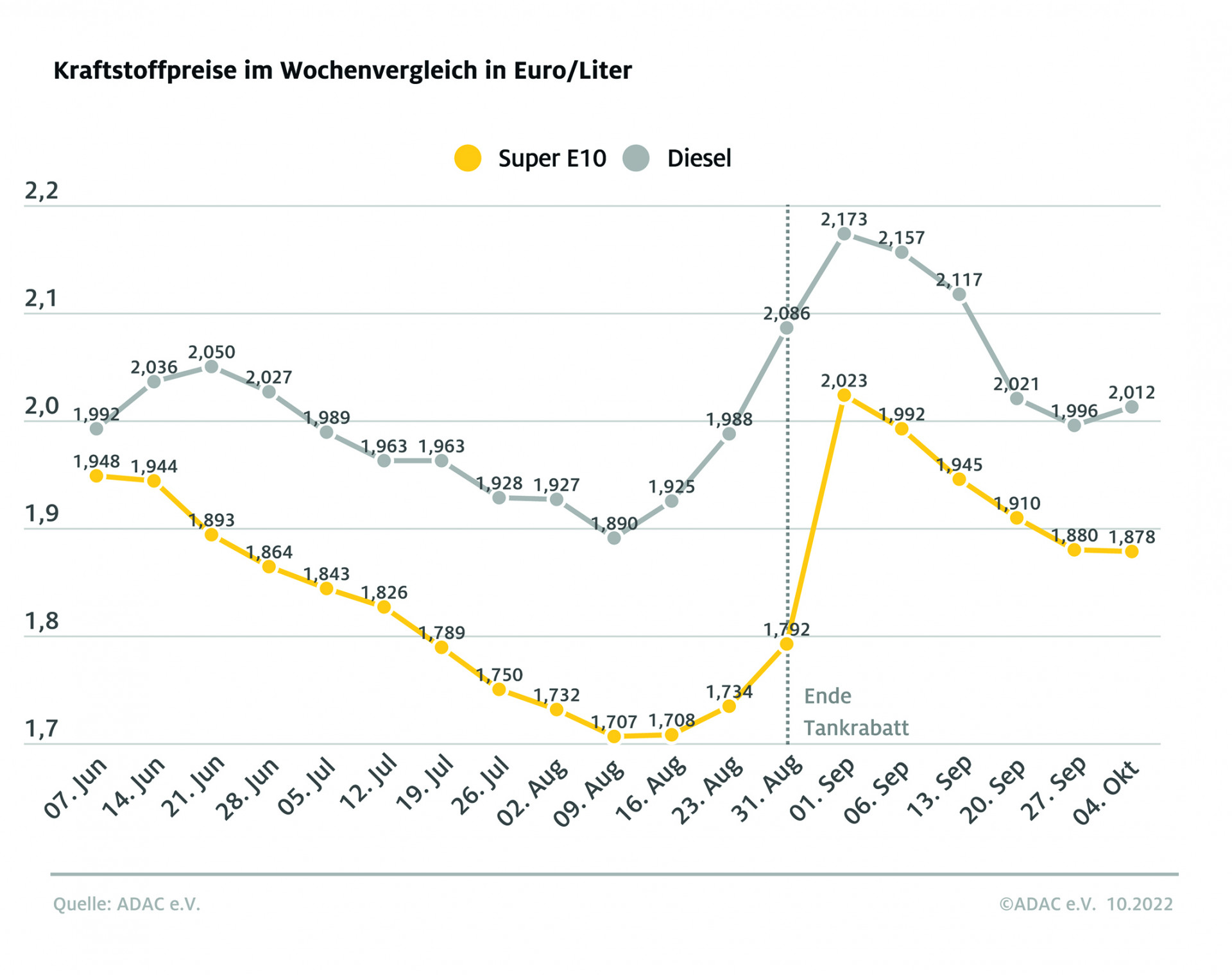 Während der Benzinpreis laut ADAC zwar im Vergleich zum Ölpreis weiter überhöht ist, sich aber schrittweise normalisiert, gibt die Preisentwicklung bei Diesel Anlass zu großer Sorge. Die Preise der beiden Kraftstoffsorten haben sich erneut ein gutes Stück voneinander entfernt. Obwohl auf einen Liter Diesel über 20 Cent weniger Steuern anfallen als auf Super E10, ist Diesel aktuell gut 13 Cent teurer.