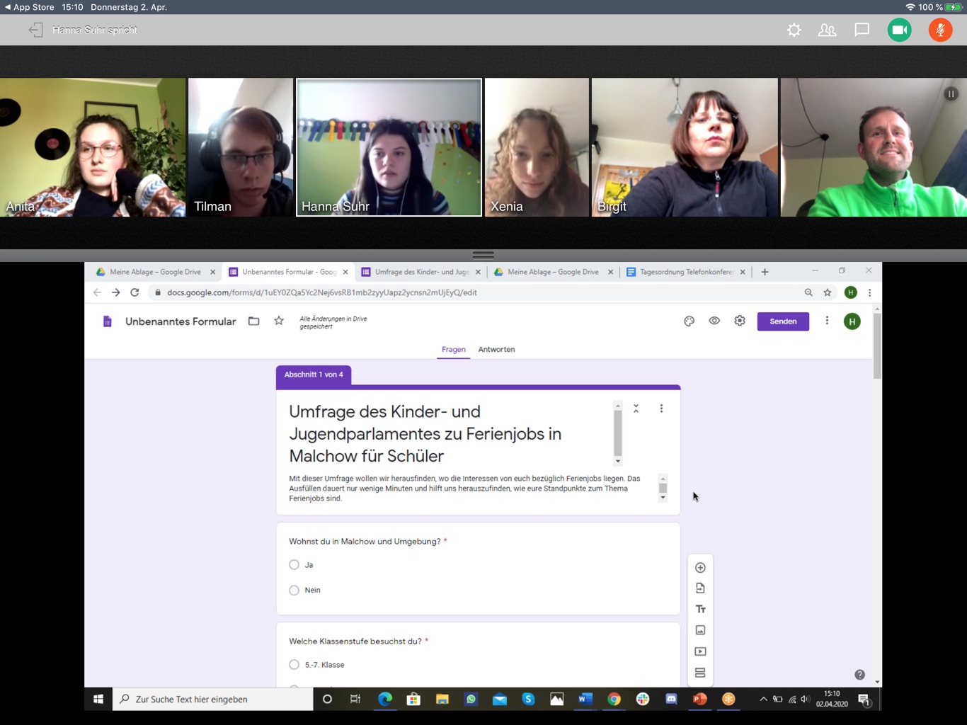 In dem Coaching stellten die einzelnen Unterteams der Schülerfirma bzw. in diesem besonderen Fall auch gleichzeitig des Kinder- und Jugendparlaments Malchow ihre aktuellen Arbeits- und Rechercheergebnisse vor. Die Schülerfirma möchte ein real umzusetzendes Portal für Ferien-, Schülerjobs, Praktika u.ä. in der Region um Malchow herum umsetzen.
