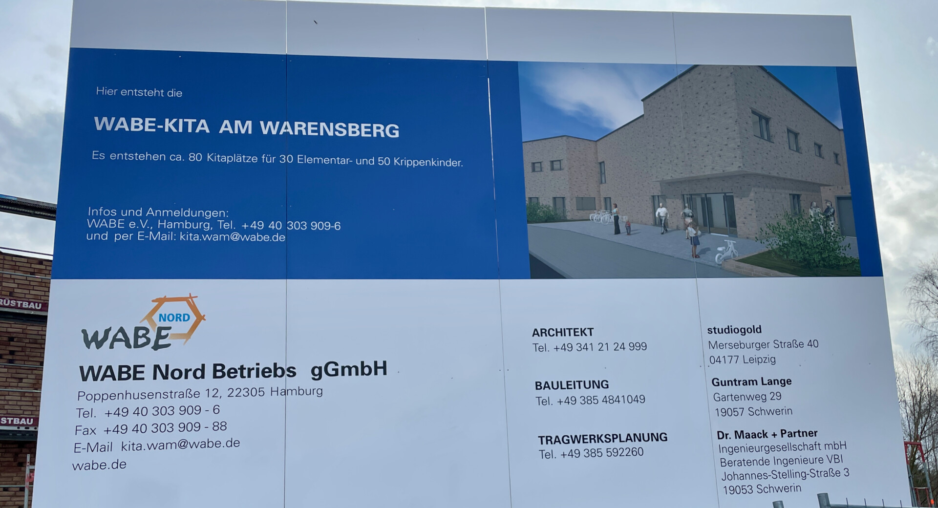 Die neue WABE-Kita hat Platz für bis zu 80 Kinder. Die pädagogischen Schwerpunkte legen die Betreiber nach eigenen Angaben auf Bewegung, Musik und Sprache. Die Eröffnung findet voraussichtlich im Frühjahr 2023 statt.