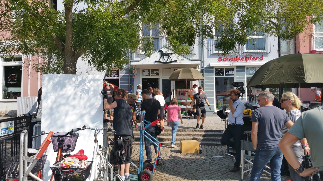 Die Dreharbeiten für den ARD-Zweiteiler haben heute im Bereich der Warener Innenstadt schon viel Publikum gefunden. Unter anderem wurde im Spielzeuggeschäft „Schaukelpferd“ gedreht.