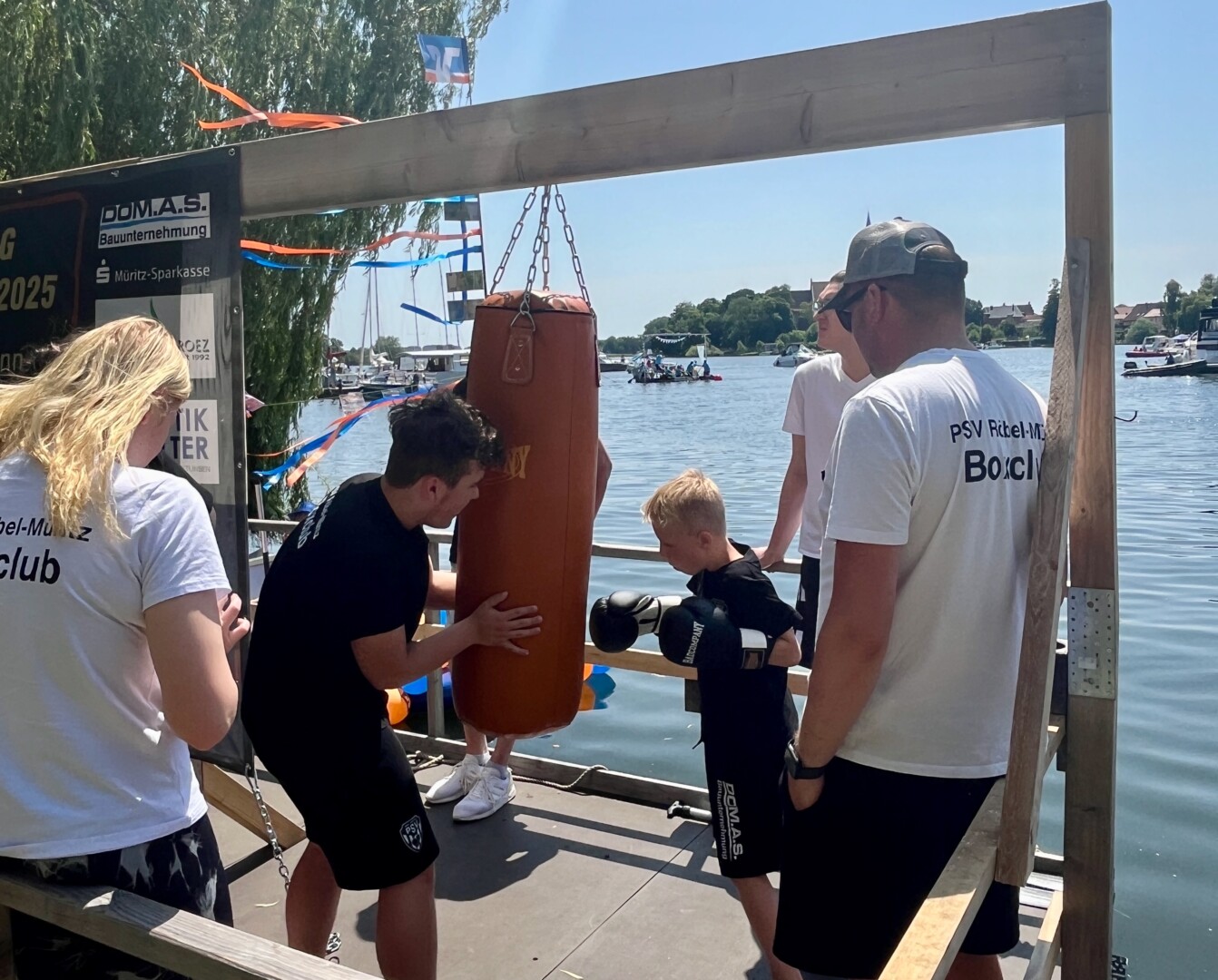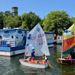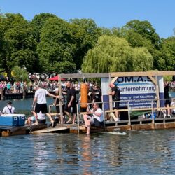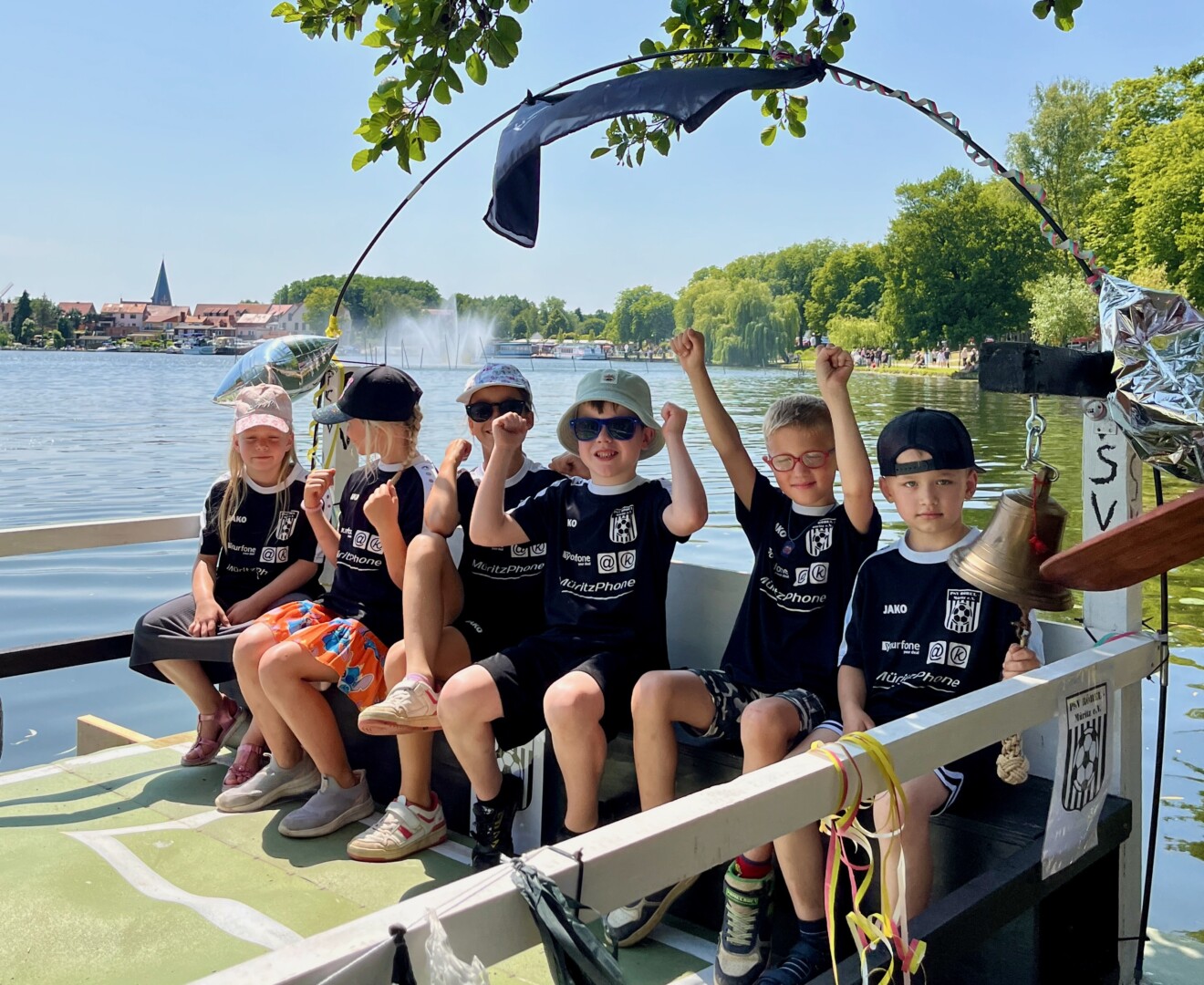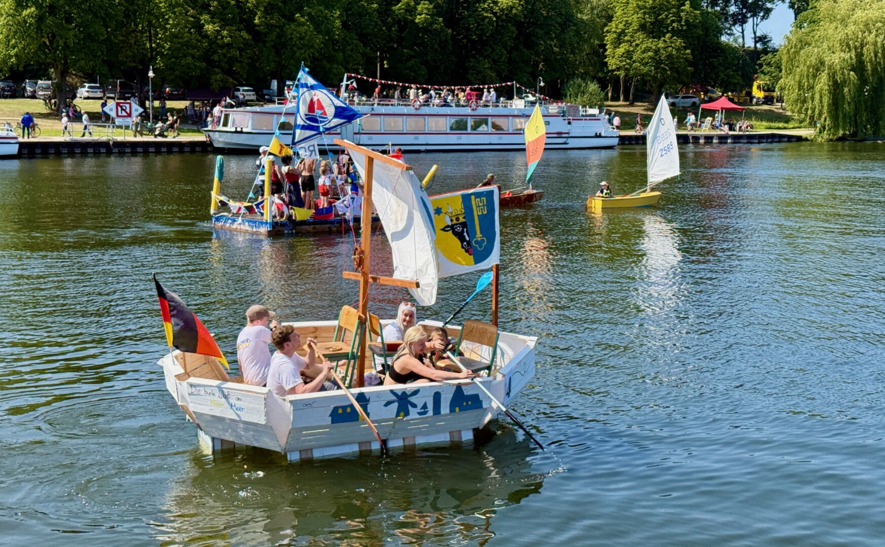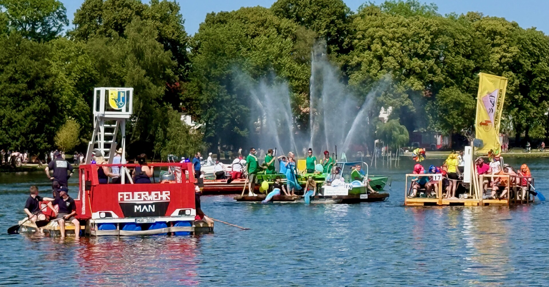 Ganz viel Applaus ernteten die „Müritzpiraten“ aus Ludorf. Sie starteten am Anfang und hatten einen besonderen Motor am Heck – Mama Sarina schwamm die gesamte Strecke mit und schob die liebevoll gestaltete „Badewanne“ mit Schatzkiste und Co. die gesamte Strecke an und schließlich ins Ziel. Dafür gab es einen Sonderpreis – verdient!