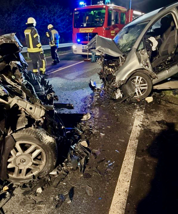 Die beiden Fahrer wurden bei dem Zusammenstoß in ihren Autos eingeklemmt und mussten durch die Kameraden der Freiwilligen Feuerwehr befreit werden. Beide Fahrzeugführer und die 17-jährige Beifahrerin in dem Renault erlitten bei dem Unfall so schwere Verletzungen, dass sie durch Rettungswagen in die umliegenden Krankenhäuser gebracht werden mussten.
