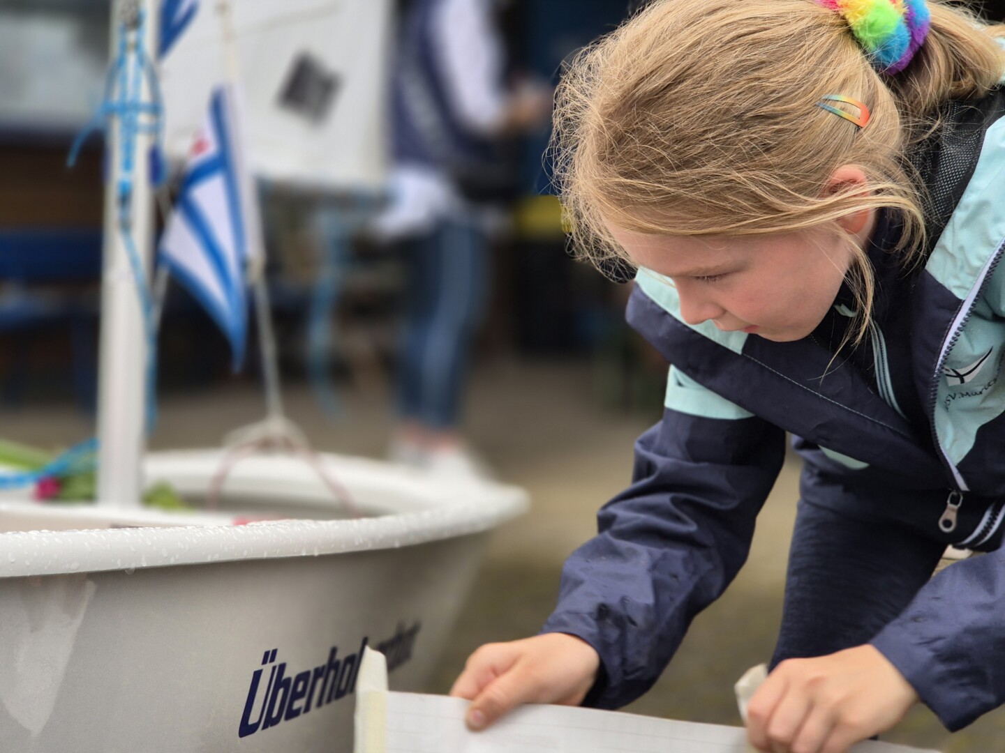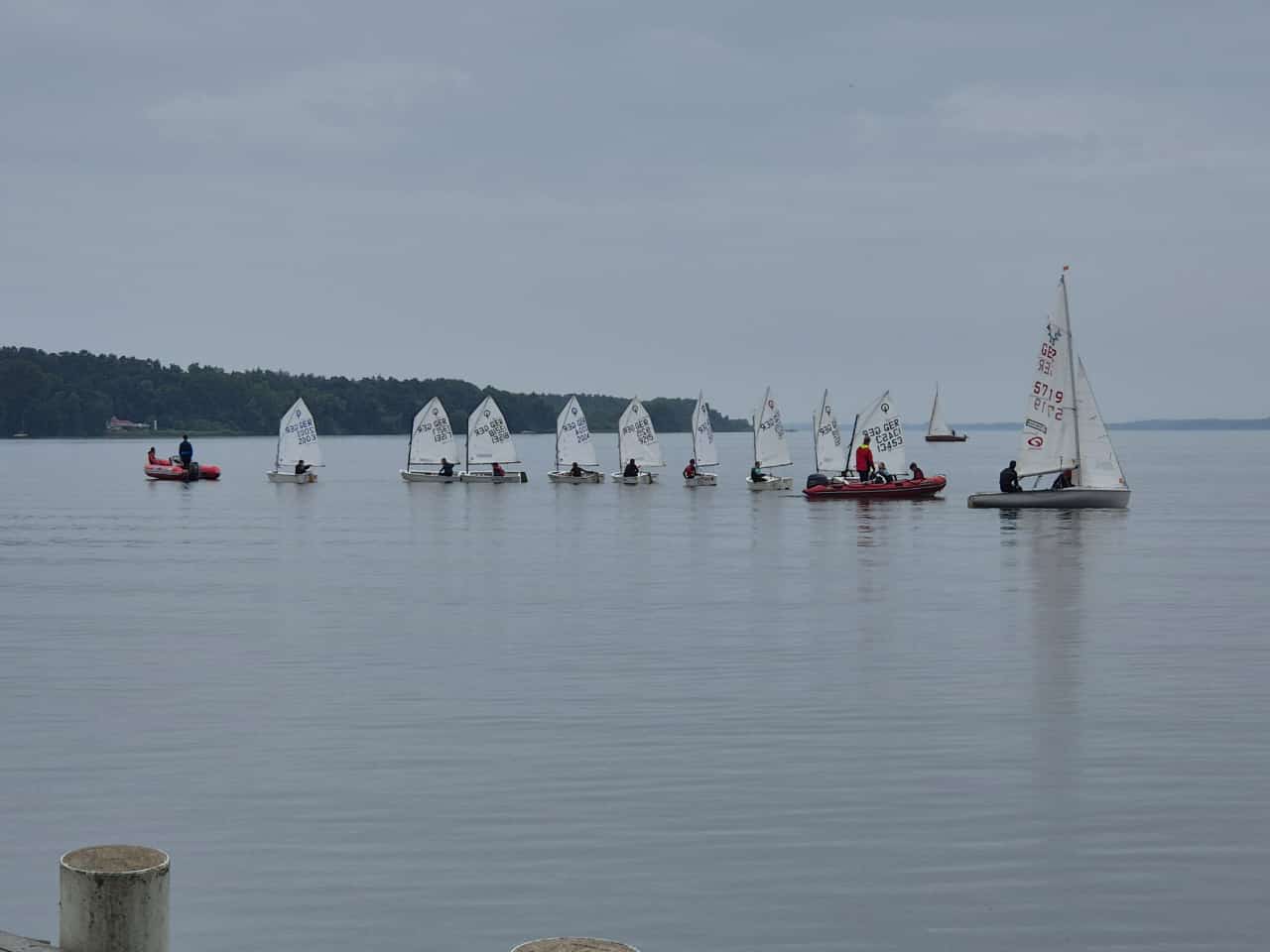 Die Ehre der Taufe wurde der sechsjährigen Katy zuteil, die als eine der jüngsten Seglerinnen des Vereins die Boote offiziell taufte. Katy zeigt mit ihrer Begeisterung und Freude am Segelsport, dass sechs Jahre ein ideales Einstiegsalter ist. Und so schreckte das Wetter mit wenig Wind und leichtem Regen Katy und ihre Segelgruppe nicht davor ab, auf den See zu fahren. Unter der Anleitung von Tobias, einer der vier ehrenamtlichen Trainer, übten die Sportler vor den Augen der Spendern. Dabei haben die neuen Optimisten die Motivation und den Enthusiasmus der Kinder deutlich gesteigert.
