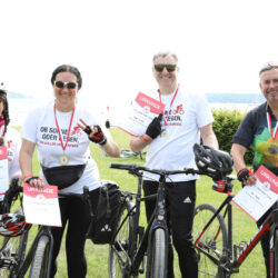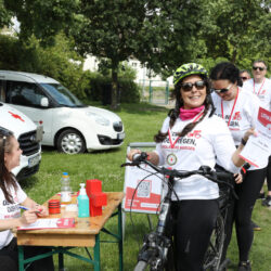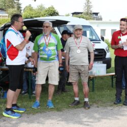 Ziel der Tour war am Nachmittag das Warener Volksbad, wo das Sattelfest mit Essen, Getränken und musikalischer Unterhaltung stattfand. Aber auch Medaillen und Urkunden warteten auf alle Teilnehmer. Ronny Möller, Ehrenamtskoordinator des Kreisverbandes, nahm die Auswertung der 17. DRK Zwei-Rad-Tour vor, und die Spendensumme konnte sich sehen lassen: 5.987,28 Euro kamen zusammen. Davon gehen 3.000 Euro an den Förderverein Hanse-Tour-Sonnenschein e.V., der Spendengelder zugunsten krebskranker und chronisch kranker Kinder sammelt. Der restliche Betrag kommt der ambulanten und stationären Hospizarbeit des DRK Kreisverbandes zugute.