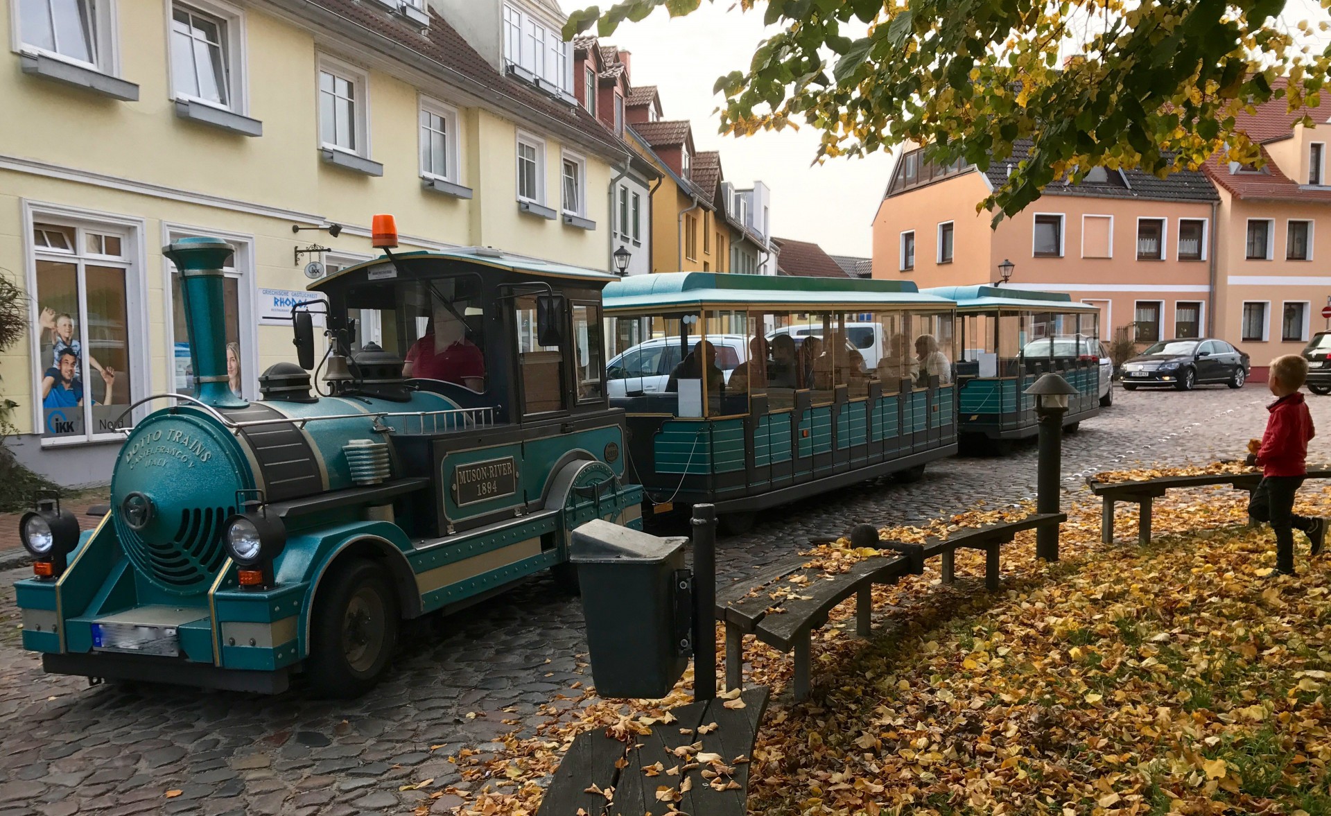 Wie beliebt die Bahn war, war an der Auslastung zu sehen und die ist meist jämmerlich. Ein paar ganz Harte lassen sich durch den Lautsprecher vollquäken und gucken durch trübe Plastikplanen raus. Jeder Bus wäre technisch besser aber vielleicht geht es ja nicht darum. Solche Gefährte werden zwar längst in dutzenden Varianten mit Elektroantrieb angeboten, was wahrscheinlich aus Sicht des Betreibers weniger lukrativ ist. Und so stinkt, qualmt und knattert nun eine neue Plastik-Lokomohuschhusch mit größerem Dieselmotor durchs Heilbad ehemals Luftkurort, mit dem vielfachen Abgasausstoß gegenüber einem Bus, die bestimmt die ASU problemlos bestanden hat. Cool!