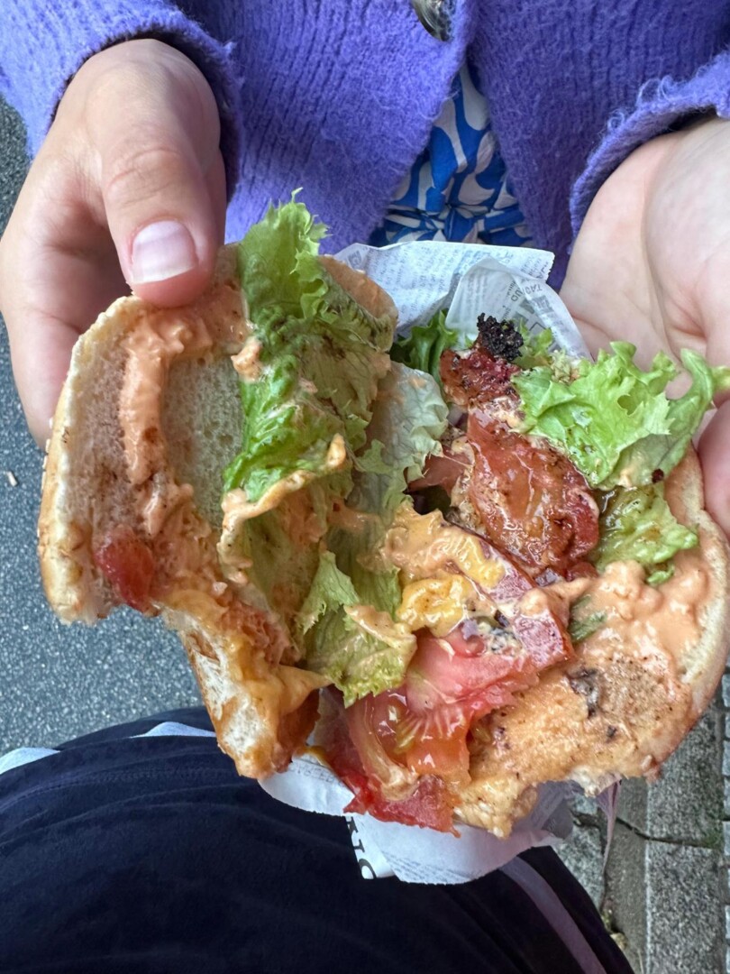 „Ich hatte Lust auf einen Burger und da ich Vegetarierin bin und das vegetarische Angebot etwas mau war, freute ich mich, dass die Burgerbude von Florian „Ötzi“ Thomas einen vegetarischen Burger im Angebot hatte.
