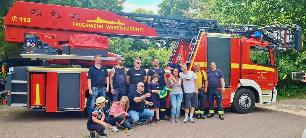 Die Resonanz war überwältigend: Das Schicksal der elfjährigen Luna aus Stavenhagen hat eine Welle der Solidarität in der gesamten Region ausgelöst. Die Kleine hat nicht nur einen seltenen Gendefekt, sondern leidet auch seit vielen Jahren an Krebs (WsM berichtete). Während die Krankenkasse sie für austherapiert hält, setzen ihre Eltern, Freunde und Bekannte die Hoffnung auf ein spezielles Medikament. Doch das müssen die Eltern selbst zahlen – 1500 Euro pro Anwendung, alle drei Wochen. Um die Familie zu unterstützen, haben Freunde gestern ein großes Kinderfest in Rittermannshagen organisiert. Und dazu noch eine besondere Überraschung für Luna – eine Fahrt mit der Feuerwehr. Die ehrenamtlichen Retter haben sich nicht lange bitten lassen. Neben der Wehr aus Faulenrost eilten auch die Moltzower Retter, die Wehr aus Schwinkendorf und die Drehleiter aus Waren zum besonderen Kinderfest.