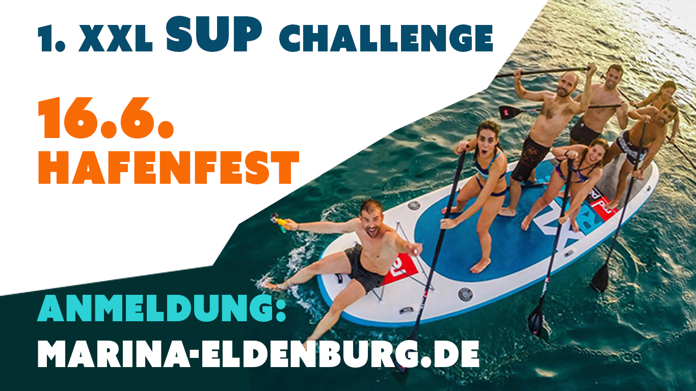 Zum Hafenfest in der Marina Eldenburg am 16. Juni gibt’s in diesem Jahr nicht nur das beliebte Pappboot-Rennen der Knirpse, sondern erstmals den SUP Cup XXL. Heißt: Ein Team mit vier bis sechs Leuten „paddelt“ auf einem Board um die Bestzeit, wobei es in diesem Fall wohl eher um das Trockenbleiben geht.