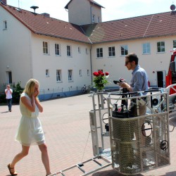 Die Anspannung stand dem jungen Feuerwehrmann buchstäblich ins Gesicht geschrieben. Ein bisschen blass um die Nase wartete er im Korb der Drehleiter auf seine Kim. Noch viel aufgeregter schienen die beiden Mütter des Paares. Sie mussten ihre Tränen schon wegwischen, bevor überhaupt irgendetwas passiert war.