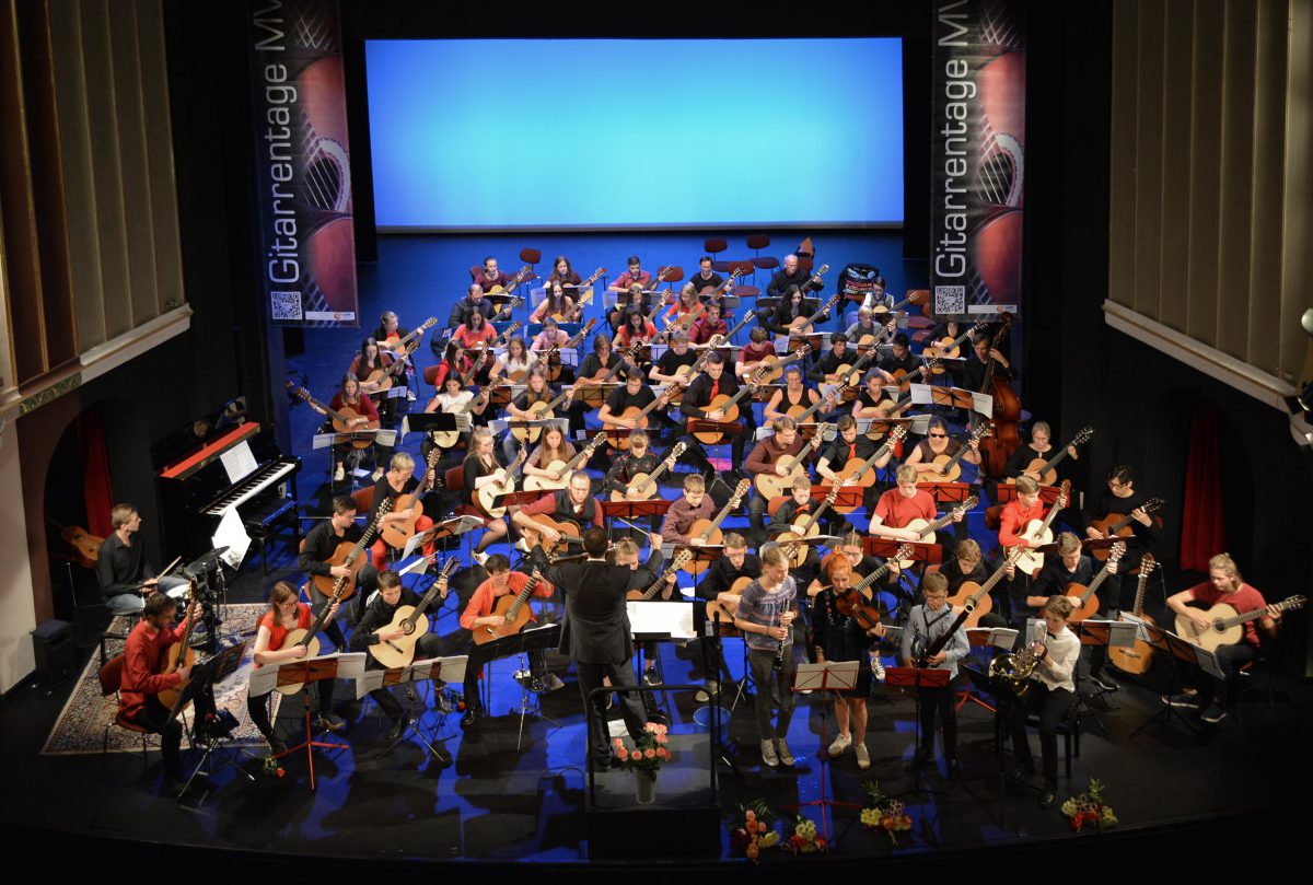 Die, in den Probentagen erarbeiteten, eigens für die teilnehmenden Musiker arrangierten, Stücke kommen im großen Abschlusskonzert zur Aufführung. Die musikalische Arbeit beginnt jedoch weit vor den Gitarrentagen: die Pädagogen der teilnehmenden Musikschulen bereiten ihre Schützlinge mehrere Monaten für die Probenphase vor und tragen entscheidend zum Gelingen des musikalischen Projekts bei. Nicht ganz ohne Stolz verweisen die Organisatoren hierbei auf die stetig wachsende Anhängerschar der Gitarrentage, die sich von den Kinderschuhen bis heute zu einer festen Größe im Terminkalender der Musikschulen entwickelt haben. Die Gitarrentage-MV werden durch den Landesverband der Musikschulen MV unterstützt.