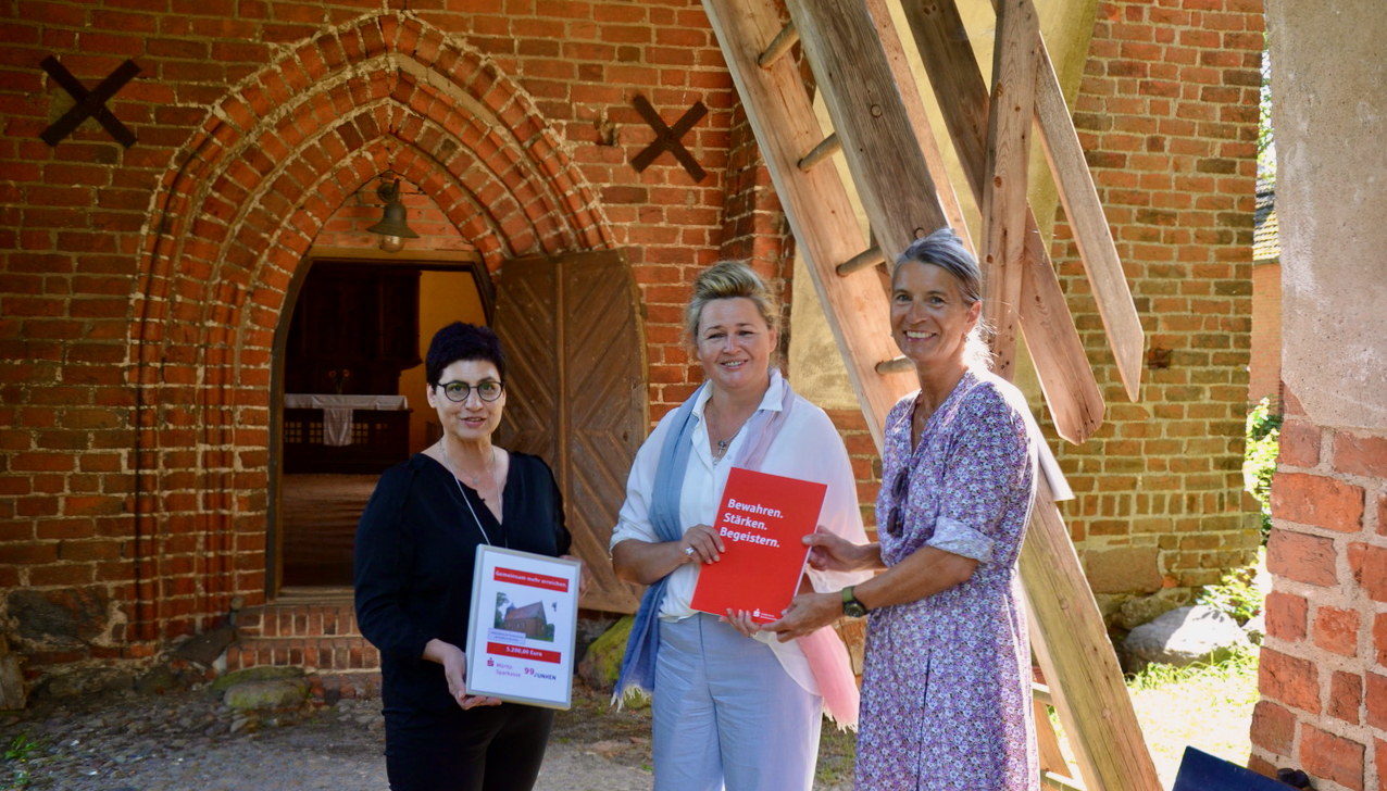 Die Ostdeutsche Sparkassenstiftung und die Müritz-Sparkasse engagieren sich gemeinsam für kulturhistorisch bedeutende kleine Kirchen in der Müritz-Region. In dieser Woche überbrachten Andrea Perlick, Vorstandsvorsitzende der Müritz-Sparkasse, und Maren Melzer, Vorstandsstab, dem Förderverein Dorfkirche Buchholz e. V. die Fördermittelzusage für die Restaurierung der Wandmalereien in der Kirche.