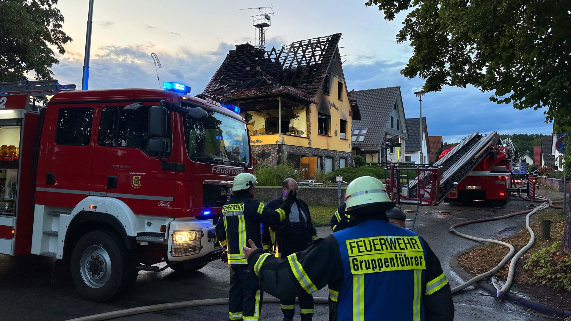 Im Einsatz waren fünf Freiwillige Feuerwehren mit 38 Einsatzkräften, sieben Fahrzeugen und zwei Drehleitern sowie sechs Einsatzfahrzeuge der