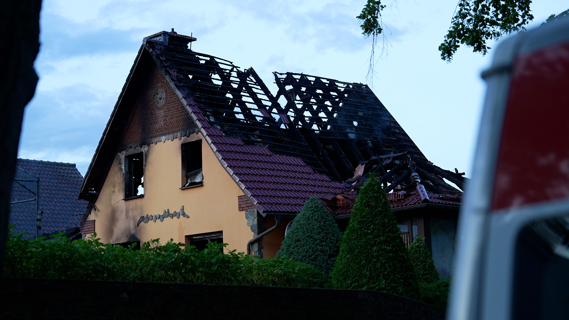 Ein Nachbarhaus wurde durch den Brand ebenfalls in Mitleidenschaft gezogen. Ein 76-jähriger Nachbar, der Hilfe leisten wollte, erlitt eine Rauchgasintoxikation.