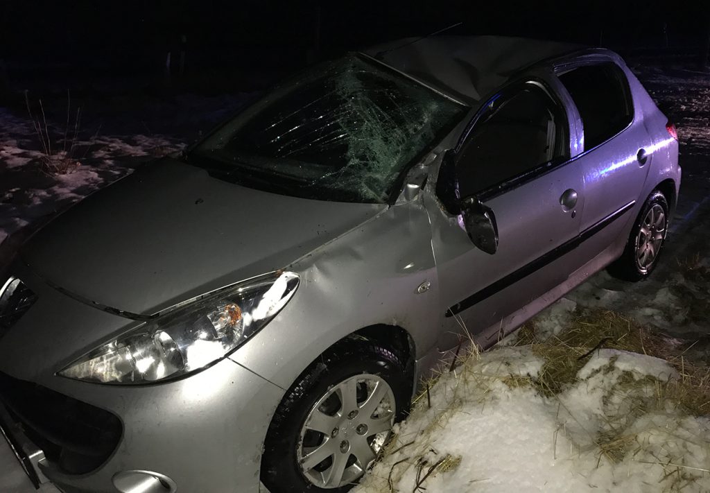 Ihr kleiner Peugeot kommt nach links von der Straße ab, überschlägt sich auf der angrenzenden Weide und kam schließlich auf den Rädern zum Stehen.