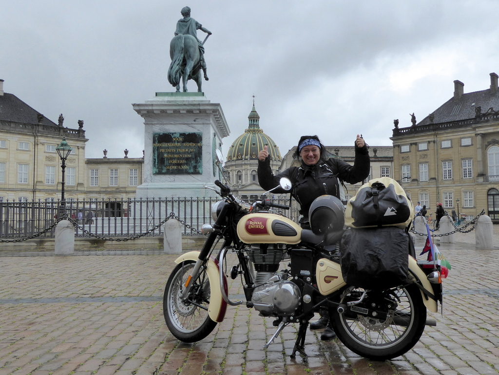 Nach ein paar kleineren Testfahrten, bei denen sie sich aneinander gewöhnten, kaufte sich Michi ein Zelt, Schlafsack und Isomatte, ließ sich vom Bürgermeister ihrer Heimatstadt Wilthen eine Grußbotschaft ausstellen und startete in Richtung Skandinavien. Ihr Ziel waren die drei nordischen Königshäuser in Kopenhagen, Stockholm und Oslo. Dabei ging es ihr weniger um die gekrönten Häupter, als vielmehr um ein Foto ihrer royalen „Lady“ vor dem königlichen Schloss.