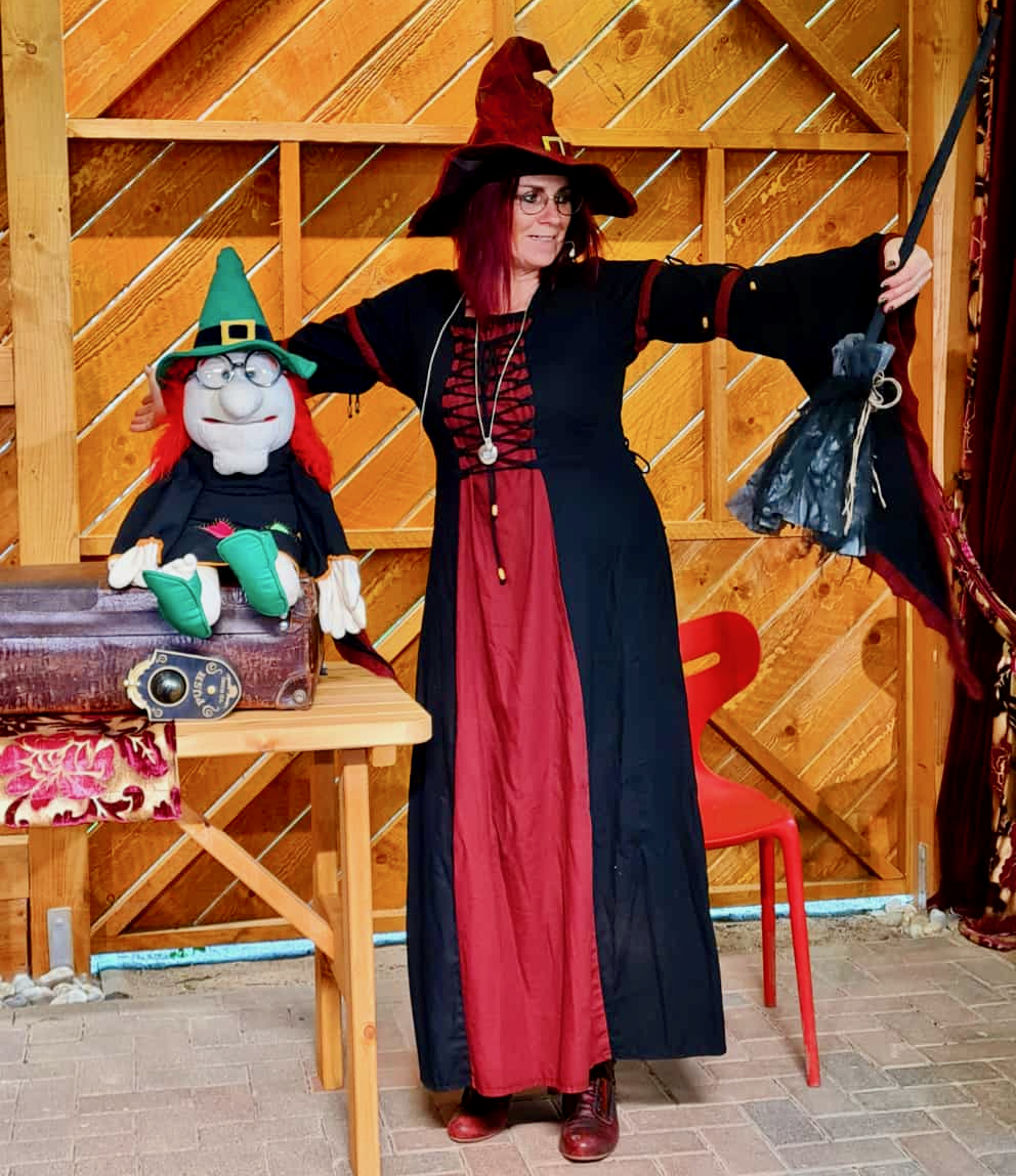 Alle Kinder waren neugierig und freuten sich sehr, als Ines Wittenberg als Hexe verkleidet mit ihrem tanzenden Besen über die kleine Bühne hüpfte.