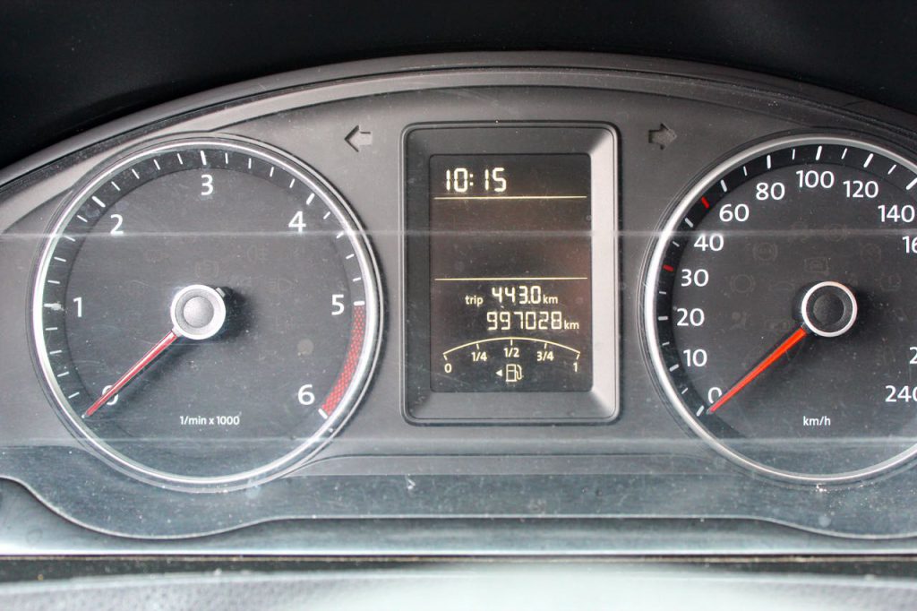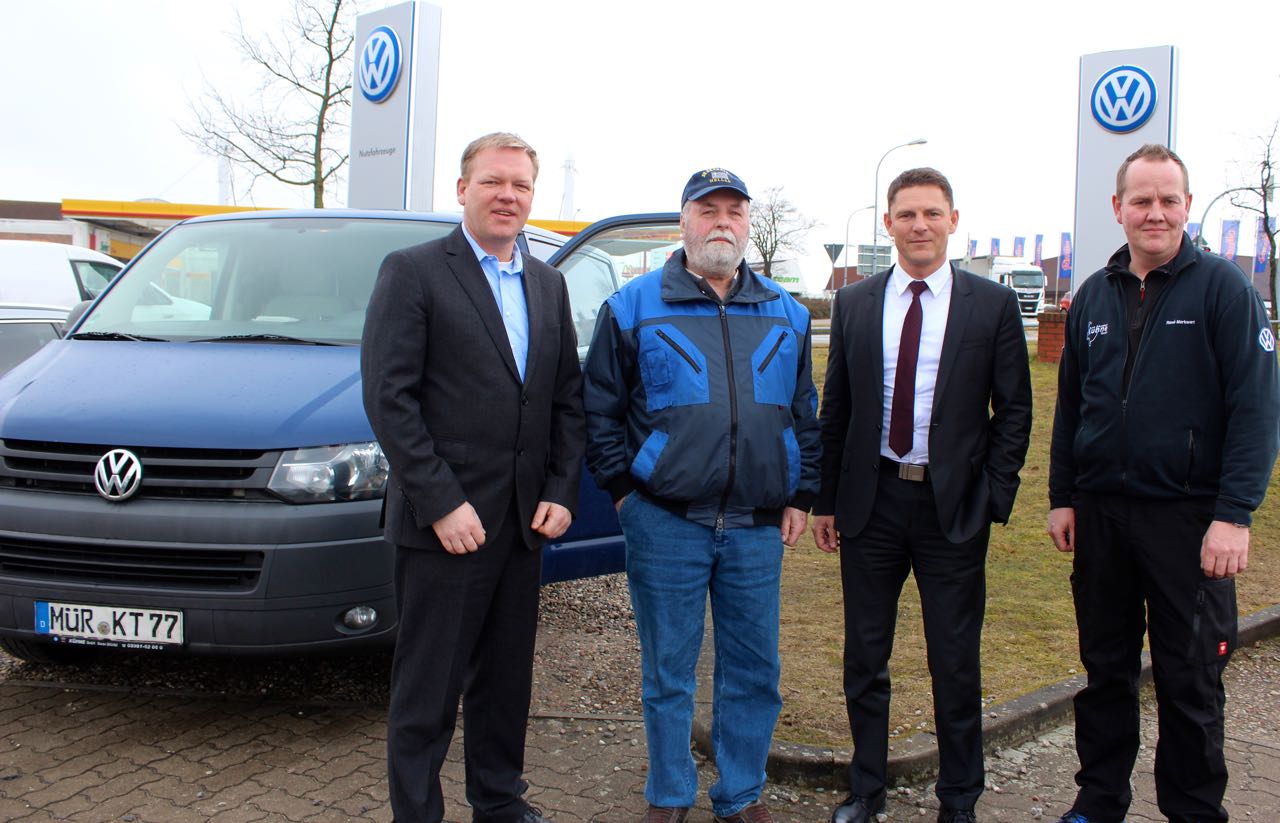 Der T5, der bei einer Sechs-Tage-Woche pro Tag durchschnittlich 800 Kilometer auf dem Asphalt unterwegs ist, wird auch weiter seinen Dienst für Knuth Transporte leisten. Allerdings in wenigen Tagen mit einem anderen Tacho. Denn bei den neueren Fahrzeugen, so Tobias Reinert als VW-Bezirksleiter, bleibt die Uhr bei 999 999 Kilometern stehen. „Selbstverständlich gibt’s das neue Teil gratis. Außerdem spendiert das Autohaus Kühne die nächste Wartung für den Wagen“, so Tobias Reinert.