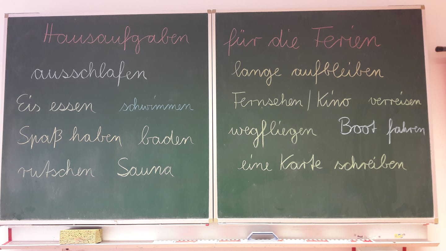 Von wegen, keine Hausaufgaben in den Ferien. An der Tafel der Erstklässler der Warener Arche-Schule standen heute zur Zeugnisausgabe jede Menge Aufgaben, für die kommenden Wochen…