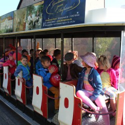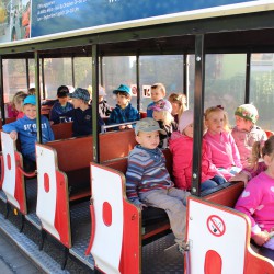 Ganz aufgeregt warteten die Kinder nach dem Frühstück auf die Bahn. Als sie dann endlich zu sehen war und direkt vor der Kindereinrichtung hielt, jubelten alle vor Freude. Jeder machte es sich in den niedlichen Lok-Anhängern gemütlich. Ines von den Driesch, bezahlte beim Fahrer der Tschu-Tschu-Bahn, und schon konnte es losgehen. Fröhlich singend und winkend tuckerten die Kleinen durch die Stadt bei strahlend blauem Himmel und Sonnenschein.