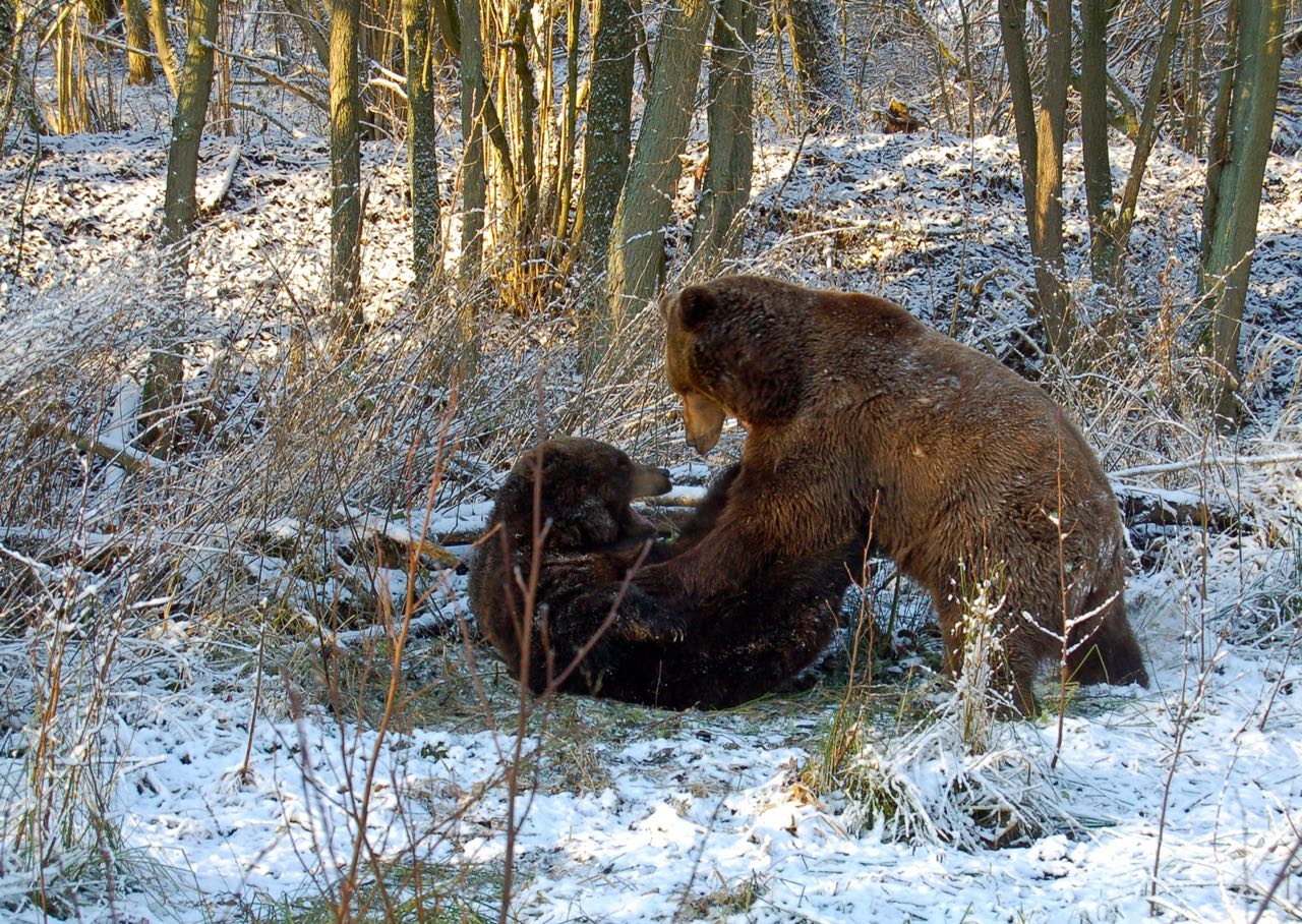 Auch wenn einige Bären noch in der Winterruhe sind und tief und fest schlafen, gibt es im Bärenwald immer etwas zu sehen: Durch die häufigen Wetterumschwünge lassen sich die Bären immer wieder in ihren naturbelassenen Gehegen erblicken. Am häufigsten sind derzeit Michal und Tapsi, Siggi und Balou zu sehen.