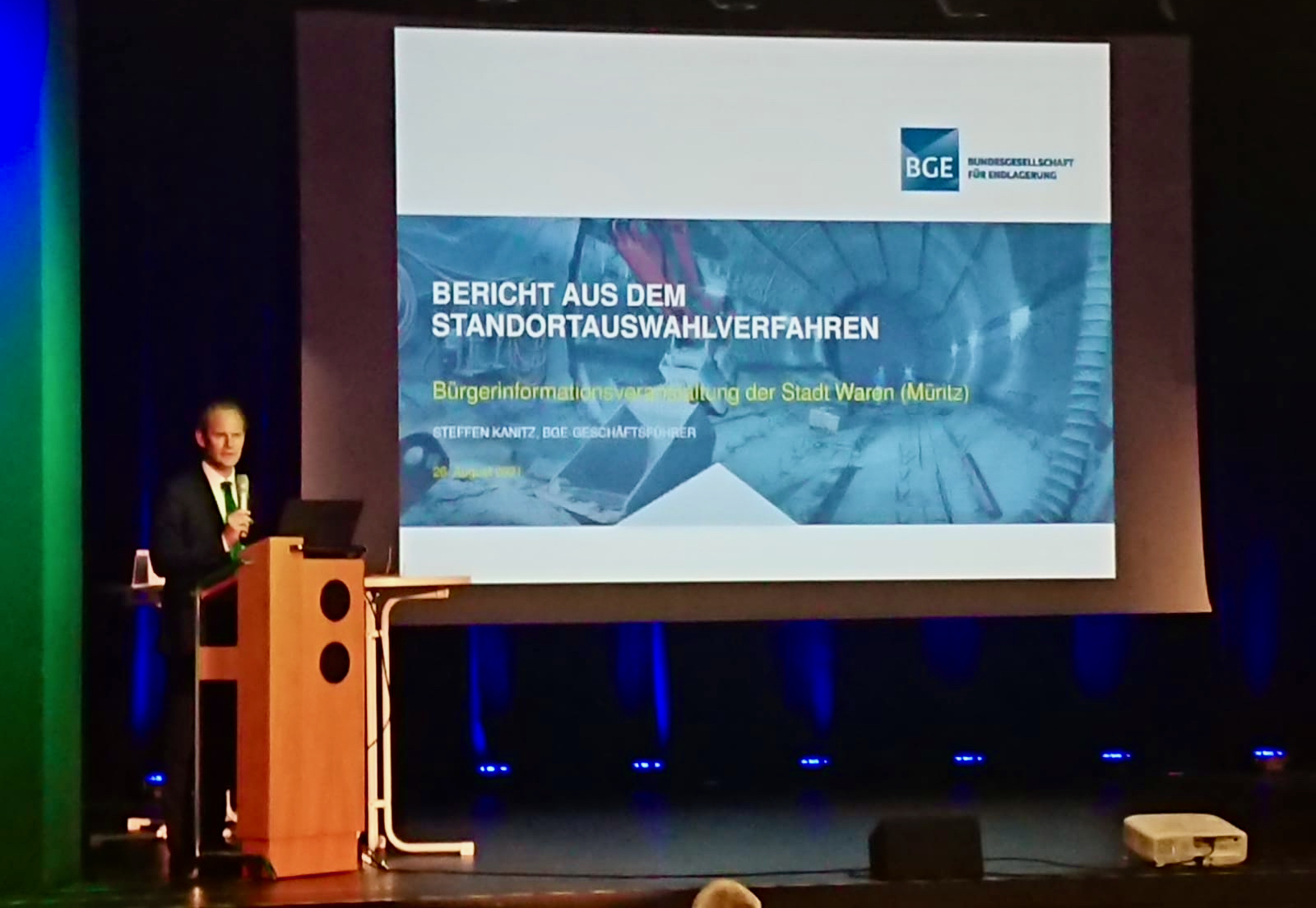 Wer die akribische wissenschaftliche Suche nach dem besten Standort für ein Endlager von radioaktivem Abfall verfolgen will, braucht einen langen Atem. Das wurde gestern Abend bei einem Informationsabend der zuständigen Behörden in Waren deutlich, zu dem etwa 50 Besucher kamen. Diese Art der Suche hat der Bundestag beschlossen.