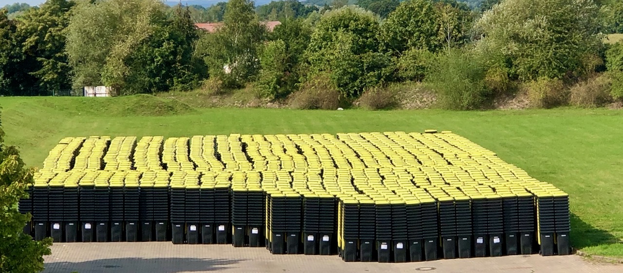 Schon jetzt beginnt die Verteilung der Gelben Tonnen. Und zwar ab dem 28. September. Die Gelben Tonnen sollen im Auftrag von REMONDIS durch ein beauftragtes Logistikunternehmen ausgeliefert und an dem jeweiligen Grundstück bereitgestellt werden. Alle Behälter sind mit einem Barcode und der entsprechenden Adresse versehen. So kann jedes Grundstück seinen Behälter zweifelsfrei zuordnen. Die Behälter werden aber nicht persönlich übergeben.