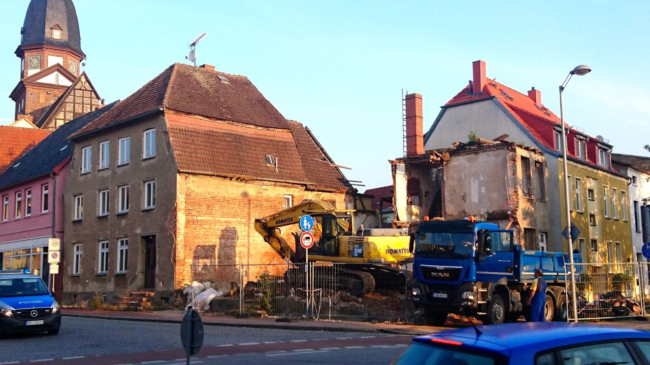 Im Frühjahr vergangenen Jahres begann der Abriss dieser Haus-Ruine in der Warener Burgstraße. Jetzt, eineinhalb Jahre später, scheint er endlich beendet zu werden.