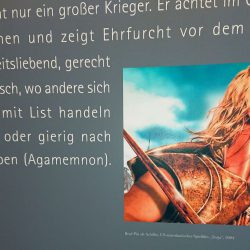 Eine Schulklasse vom Warener Wossidlo-Gymnasium hat auch einen Platz bekommen: Die Mädchen und Jungen haben eine sehr moderne Version aus der griechischen Sage aufgenommen: „Ey Alter, echt krass auf dem Mittelmeer was“, hallt es aus dem Lautsprecher. Gegenüber kann man den Schauspieler Brad Pitt entdecken, wie er in einem Film den Helden Achilleus spielte, als er Troja mit den Griechen eroberte.