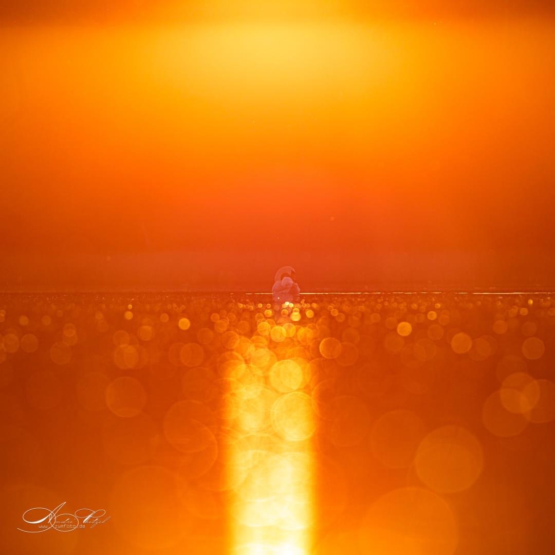Den Schwan im Sonnenuntergang hat er auf dem Loppiner See fotografiert.