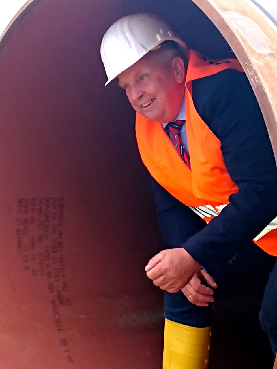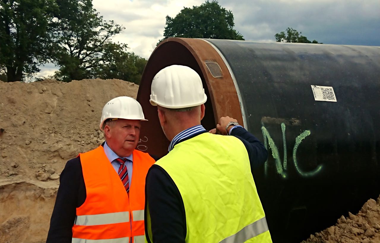 Backhaus nahm die Leitung jetzt besonders unter dem Umweltaspekt unter die Lupe, und zollte den Bauarbeitern, Bauleitern und Planern großen Respekt. Der 60-Jährige kletterte gar in die Leitung, um sich von der Größe zu überzeugen. Wer den Atomausstieg wirklich wolle, müsse zum Gas „Ja“ sagen, meinte der Minister. Es vergehe keine Umweltministerkonferenz in Deutschland, in der nicht sorgenvoll auf andere Staaten an Deutschlands Grenze geschaut werde, die immer noch Atomkraft nutzen oder sogar neue Kernkraftwerke bauen. Dazu komme der Kohleausstieg. Erdgas sei da eine wichtige Brückentechnologie. Man könne nicht alles ablehnen, sagte der Minister mit Blick auf Leute, die auch gegen Erdgasleitungen protestieren.