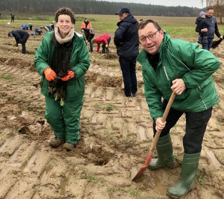 Rund 2.800 Setzlinge haben am vergangenen Wochenende im Klimawald Fleesensee den Weg in die Erde gefunden. „Wer Bäume pflanzt, leistet einen wichtigen Beitrag zum Klimaschutz und übernimmt Verantwortung für künftige Generationen“, so MV-Landwirtschaftsminister Till Backhaus, der selbst mit zum Spaten gerfiffen hat.