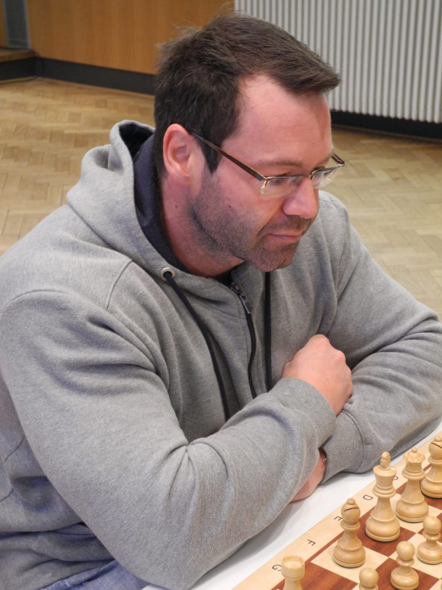 An den Brettern bestätigte sich diese Einschätzung schnell. Peter Kühn gewann kampflos, Rickert Reeps (Foto links) spielte bei seinem ersten Einsatz für die Spielgemeinschaft eine souveräne und überzeugende Partie, und Albrecht Schumacher schlug seinen indisponierten Gegner in nur zwölf Zügen. Nach Remisen von Lothar Arning und Jörg Schmidt stellte Michael Stork mit einem weiteren Sieg bereits nach 3 Stunden den Gesamterfolg sicher. Wolfgang Schreiner stellte dann in leicht vorteilhafter Stellung eine Figur ein und musste aufgeben, Frank Hertel-Mach verwertete abschließend seinen Vorteil und stellte den Endstand von 6:2 gegen die Gäste von der Insel her.