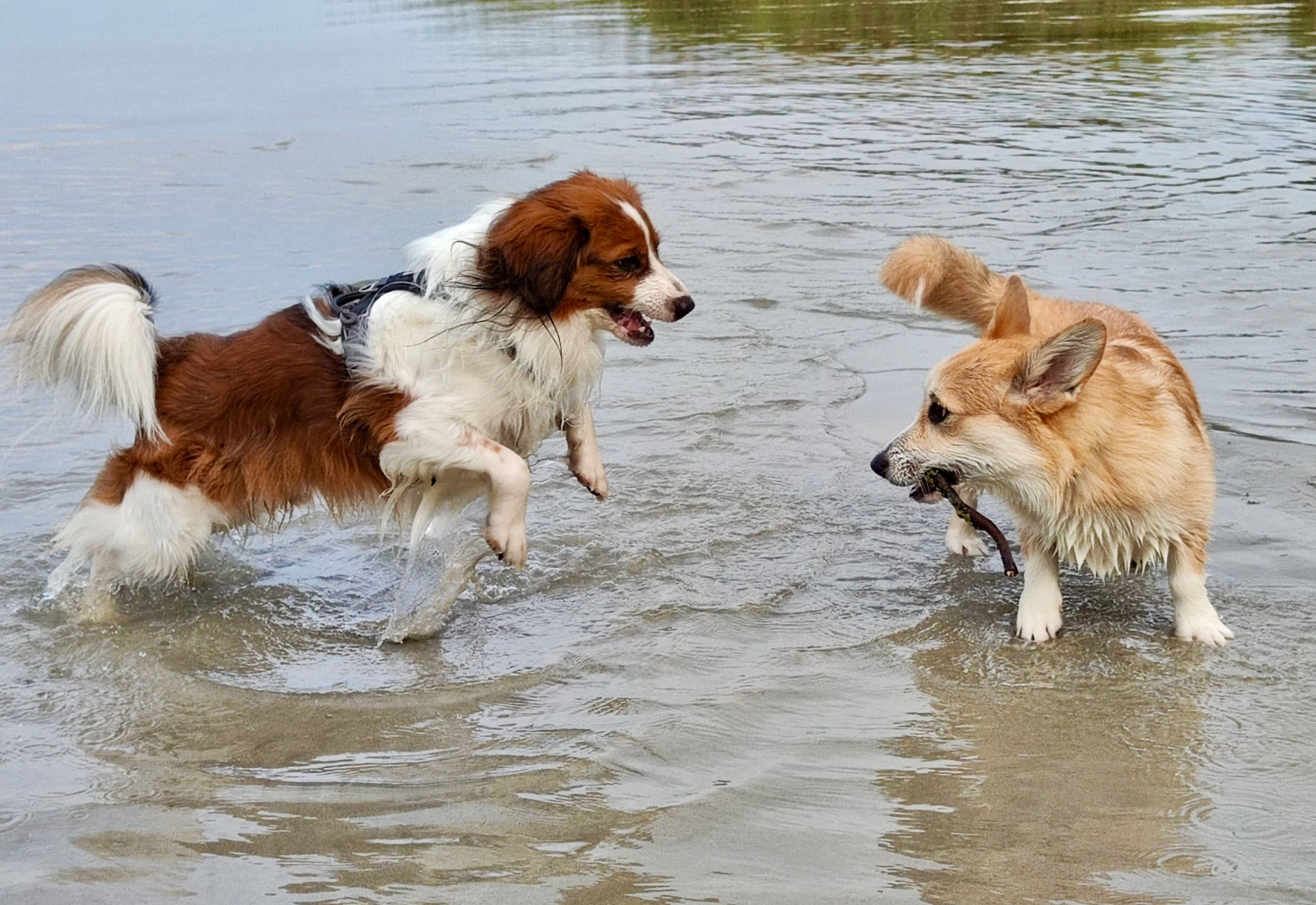 Natürlich stand den Hunden auch ausreichend Zeit zur Verfügung, um miteinander zu spielen, in der Müritz zu baden oder auf der Wiese zu toben, also einfach Hund zu sein. Das alles wurde ausgiebig genutzt, sehr zur Freude vieler Besitzer und Gäste. Somit hatten auch die teilnehmenden Rasse-Interessenten Gelegenheit, die Kooikerhondjes mit allen Facetten kennenzulernen.
