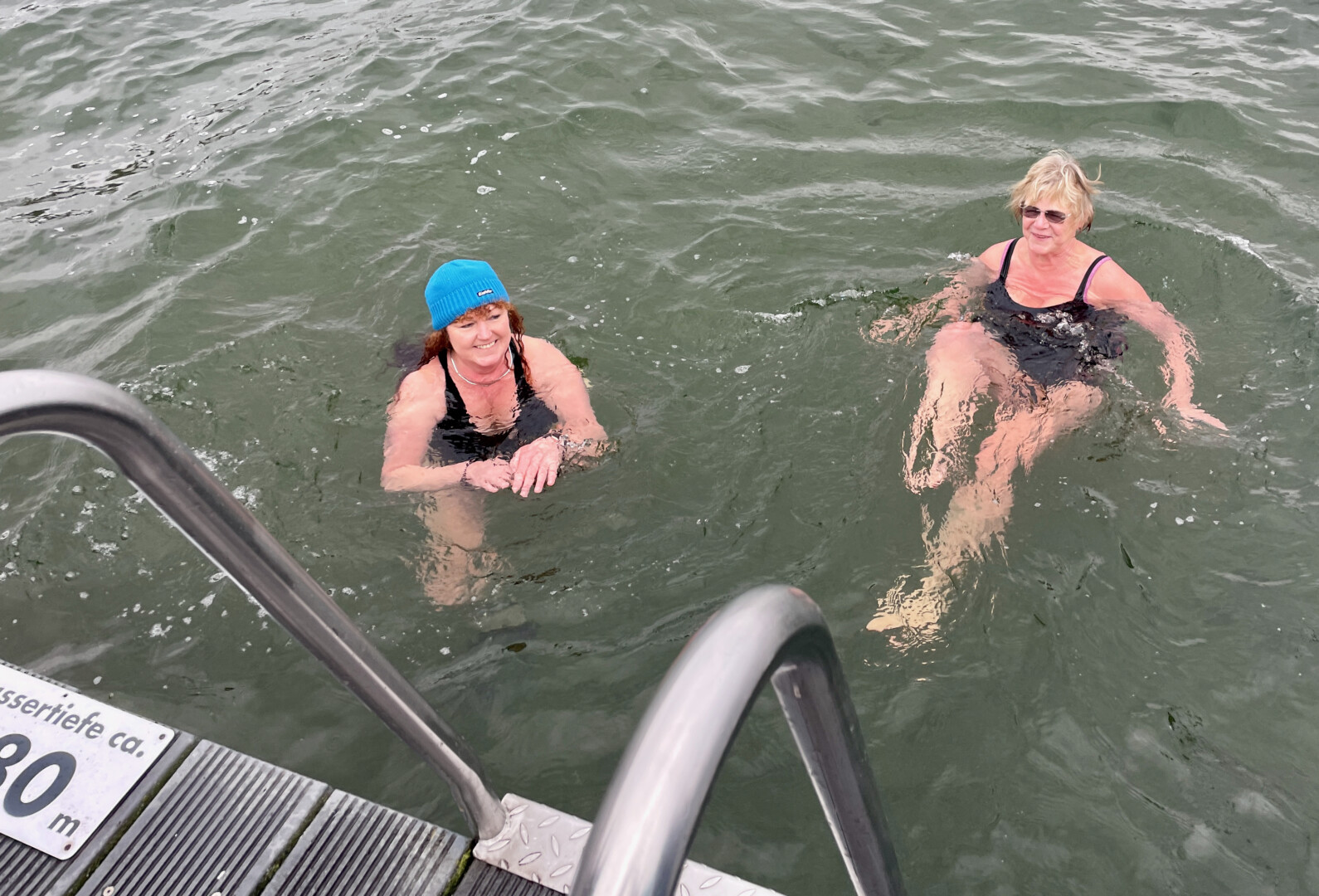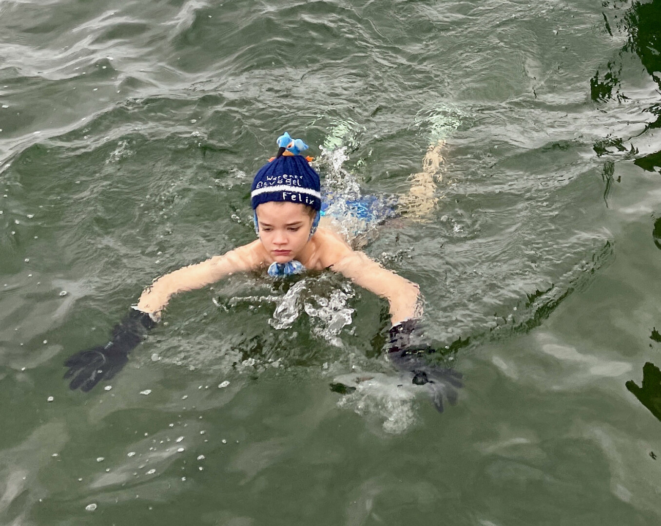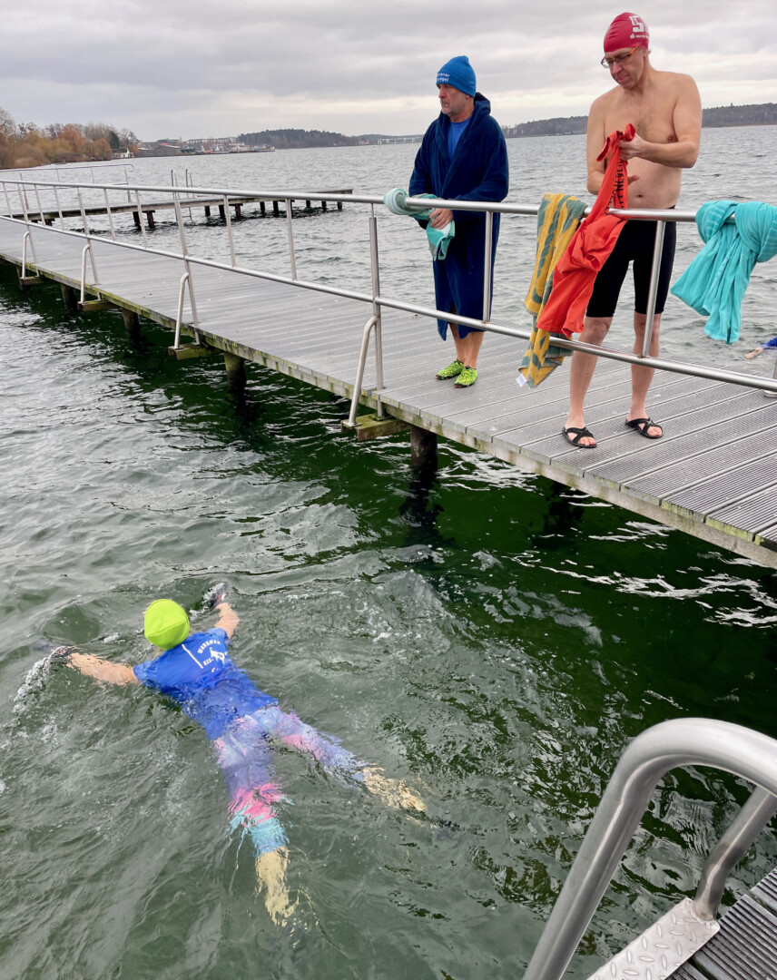 Hauptsache eine schön warme Mütze auf dem Kopf: Gut 20 Frauen und Männer und ein Kind haben heute Nachmittag am Warener Volksbad angebadet und das neue Jahr damit ziemlich erfrischend begrüßt. Während sich die Zuschauer in ihre Jacken eingemummelt hatten, drehten sie in der gut vier Grad kalten Müritz einige Runde.