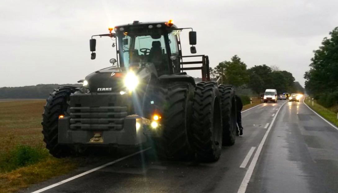 Ein Unfall mit drei beteiligten Fahrzeugen hat heute früh auf der B 192 zwischen dem Rumpshägener Berg und Möllenhagen für Behinderungen gesorgt. Nach bisherigen Erkenntnissen befuhr der 23-jährige Fahrer eines Ackerschleppers mit Zwillingsbereifung die B 192 aus Neubrandenburg kommend in Richtung Möllenhagen. Durch die Überbreite des Ackerschleppers ragte die Bereifung in den Gegenverkehr. Eine 55-jährige Fahrerin eines im Gegenverkehr fahrenden Pkw Mitsubishi erkannte bei der zu diesem Zeitpunkt vorherrschenden Dunkelheit die Überbreite des Ackerschleppers nicht und stieß gegen die äußere Bereifung des überbreiten Ackerschleppers.
