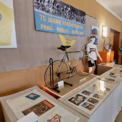 Ab 1950 nahmen DDR-Rennfahrer daran teil. Mit großen Erfolgen, wie man nachlesen kann, auch Frankreich und andere europäische Staaten schickten Rennfahrer. Bis 2006, dann war Schluss. Gezeigt werden Text- und Bildtafeln zur Historie, mehrere verschiedene Trikots – in gelb, blau und weiß. Außerdem ist ein Rennrad aus dem Jahr 1972 zu sehen, das auch schon restauriert wurde. Neben den Exponaten steht eine Art selbst gebauter Hometrainer aus der Zeit, als man die Trainingsgeräte noch selbst herstellen/basteln musste.