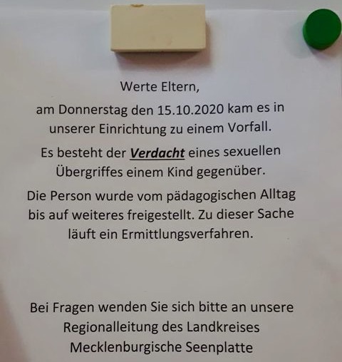 Die Polizei hat heute weitere Informationen zum Verdacht des sexuellen Übergriffs in einer Kita in Sietow (WsM berichtete), bekanntgegeben: Demnach soll ein 35-jähriger syrischer Auszubildender vor eineinhalb Wochen ein vier Jahre altes deutsches Mädchen während des Mittagsschlafs unsittlich im Gesäßbereich berührt haben.
