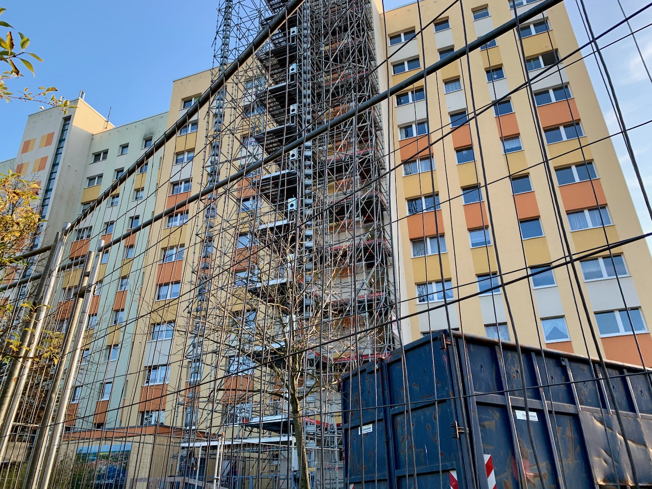 Im Rahmen der umfangreichen Sanierungs- und Modernisierungsarbeiten im Hochhaus Dietrich-Bonhoeffer-Str. 12 in Waren kommt es aktuell zu Störungen am Außenaufzug. Dieser vorübergehend installierte Außenaufzug soll die Personenbeförderung der Mieter des 11-Geschossers entsprechend einer „Aufzugsbereitschaft“ sicherstellen, damit die Mieter während der Arbeiten zum Austausch des Personenaufzuges im Haus selbst nicht ganz auf diese Unterstützung verzichten müssen.