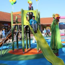Es hat nur Sekunden gedauert, dann hatten die Kleinen ihren neuen Spielplatz in Beschlag genommen. Der wurde heute früh auf dem Marktplatz in Göhren-Lebbin von Bürgermeister Peter Becher sowie Doreen Muster als Geschäftsführerin der Kur- und Tourismus GmbH eine halbe Stunde vor dem Startschuss zum Fleesenseelauf eröffnet.